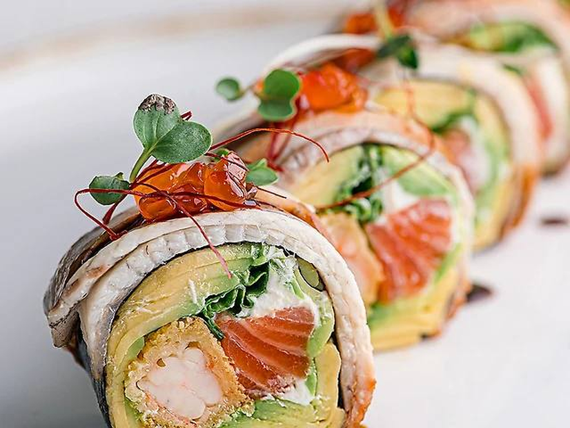 - Японський майонез, унагі, кунжут, зелена цибуля, мікрогрін